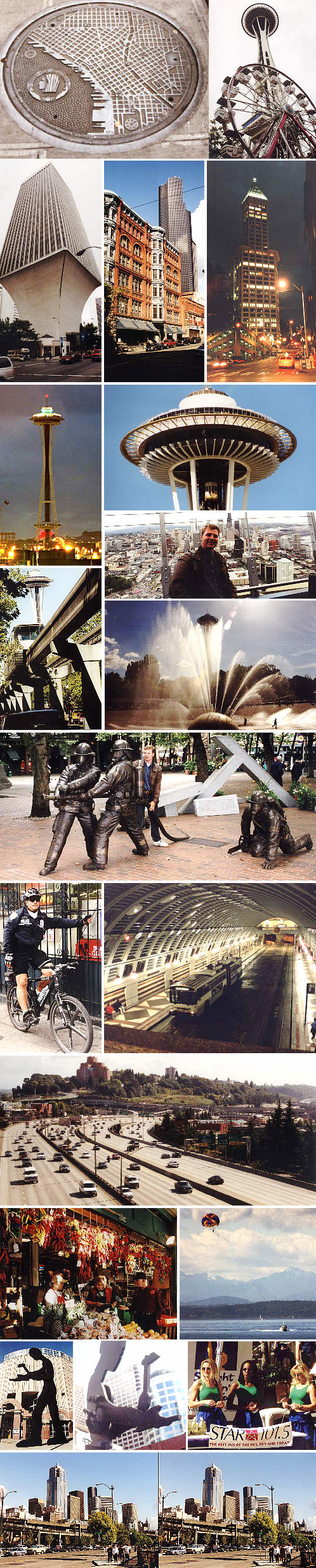 säumen die Straßen. Wahrzeichen Seattle's ist der 210 m hohe SPACE NEEDLE (Himmelsnadel).
