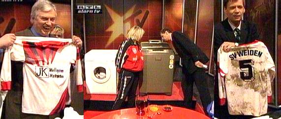 Bei STERN-TV wurde das MIDAS-Waschsystem mit wenig Erfolg getestet. Güther Jauch's T-Shirt