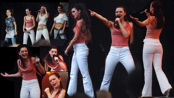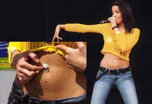 Nicole Da Silva, hübsche Portugiesin (20, aufgewachsen in Hessen, wohnt jetzt in Köln) präsentierte beim Familenfest u. a. ihren gefühlvollen, aktuellen Hit "First Kiss". Bei ihrem ersten Videodreh hat Nicole's Stylist ihr Nabel-Piercing mit einer weißen Muschel verziert. Jetzt ist es ihr Glücksbringer. |