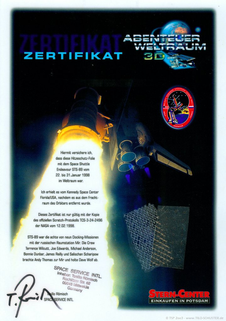 Der Handschuh mit dem die Raumstation MIR das 'letzte Mal' geschlossen wurde, eine +++ Fotoarchiv 2003 +++ Homepage +++