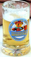 Stand schnell und preiswert nachgeschenkt haben wollte, kaufte sich zu Beginn einen Pro(Bier)-Krug = Sammlerstück 3.50 €, 0.2 l = und fortan wurde dieser für 80 Cent mit Gerstensaft randvoll aufgefüllt, egal ob mit 'nem kühlen Blonden, Schwarz-, Kirsch- oder Hanfbier. Prost ! |